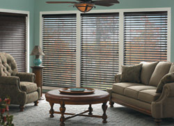 Faux Wood Horizontal Blinds are a great value alternative to Wood Blinds. They are not only less expensive, they are also extremely durable and have a timeless appeal. Faux Wood Blinds are available in a variety of colors and textures and will match any decor. Faux Wood Blinds Faux blinds give you the elegant look of wood at an affordable price. You can easily add beauty to any room in your home by selecting from a wide range of colors, finishes and textures. Faux wood offers extreme durability; the levers will not bend or break even with heavy use. We also offer you choices in louver sizes, you can select 2, 2 ½ or 3-inch louver widths. Designer valances and cornice boxes are available to add the finishing touch to the faux blinds you select. Faux Wood Horizontal Blinds Horizontal blinds provide privacy while letting you choose how much light you want to let in to the room. Faux wood blinds can be manufactured without the route-holes to offer an additional level of privacy. Horizontal faux wood blinds also offer you an extra layer of insulation from the cold and superior resistance to excess sunlight that can fade carpets and furnishings. Our horizontal blinds come in your choice of control options. Select from rout-less, for greater privacy, or choose wand tilt or cord tilt control. Faux wood blinds are also available without lift cords; movement is performed by lifting or pulling the bottom rail. For maximum ease, choose a motorized system with easy-to-use handheld or wall controls. Motorization can even be integrated with your home automation system.