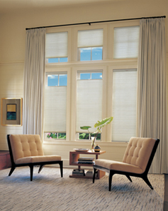 Cellular shades, also known as honeycomb shades, are very compact and light weight. These accordian style shades are available in single, double and triple cell styles as well in a variety of pleat sizes, colors and distinctive fabrics that offer varying degrees of shade control, energy efficiency and privacy. Cellular shades are durable and easy to maintain. Made of soft, amazingly strong fabric, our cellular shades are as substantial as draperies yet sleek and contemporary, without any visible cords or holes. The cellular structure offers superior insulation qualities and consistent crisp pleats. Neutral color to the street creates a uniform look form the exterior of the house.