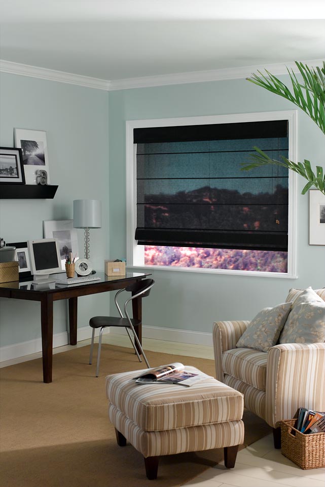 Our Roman Shades are constructed of top-quality woven fabrics that are carefully sculpted to create custom-tailored plush blinds that add an amazing richness to any room in your home. Our unique construction technique combines beautiful design with efficiency, making our Roman Shades a beautiful, yet economical solution to your window treatment needs.