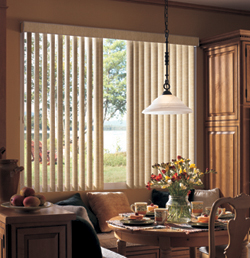 Vinyl Crown Verticals are a great alternative to draperies. They're easier on your wallet and still offer a lovely, finished look. Our Smooth PVC Verticals come in a range of colors such as whites, off whites, greens, blues, and beiges. They not only look good, but they are very energy efficient, keeping your house cool in the summer and warm in the winter. You can use the Chain clutch control to choose how much light you do or do not want coming through the vanes and when closed, they offer perfect privacy.
